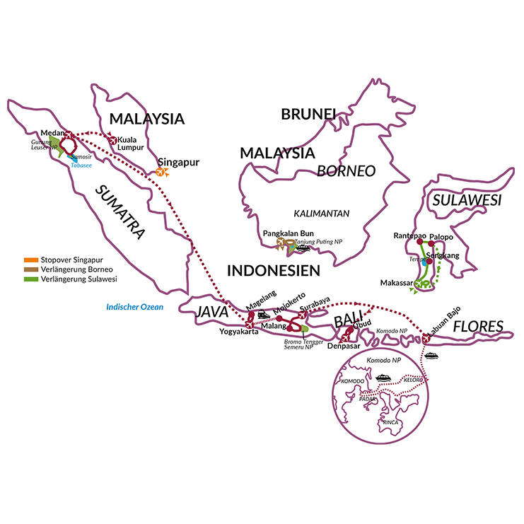 Reiseverlauf Indonesien, Malaysia (20 Tage)