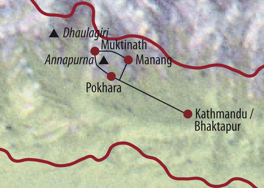 Subtropische Täler mit Reisfeldern, dichte moosbehangene Wälder, karge wüstenähnliche Landschaften und die grünen Schluchten der tief eingeschnittenen Flüsse Kali Gandaki und Marsyangdi – die landschaftliche Vielfalt wird Sie genauso beeindrucken wie der Blick auf die schneebedeckten 8.000er Dhaulagiri, Manaslu und Annapurna. Unterwegs gewinnen Sie langsam an Höhe und sind so bestens für den Thorong-La-Pass auf 5.416 m akklimatisiert, ehe Sie zum Pilgerort Muktinath und weiter entlang des Kali-Gandaki-Tals wandern. Abschließend erstrahlen die weißen Himalaya-Gipfel vom Aussichtsberg Mohare Danda zum Sonnenaufgang nochmal in besonderem Licht.