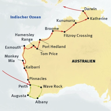 • Durchgehende, deutschsprachige Reiseleitung ab Perth / bis Darwin (gleichzeitig Fahrer des Busses)