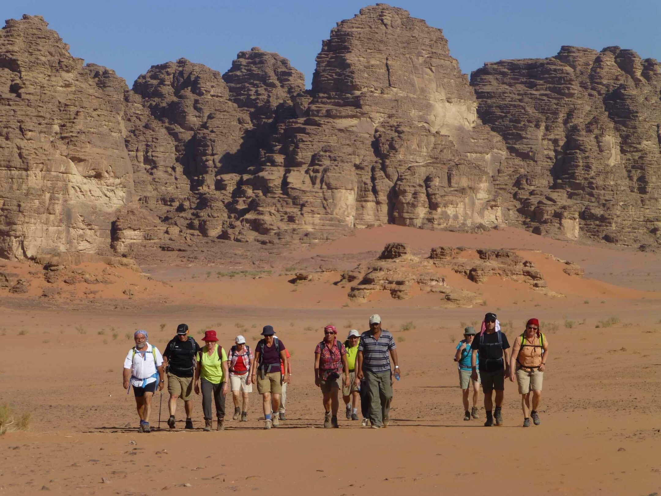 Der Veranstalter hat nicht übertrieben, die Kombination von Besichtigungen und Wanderungen ist eine gelungene Mischung. Zum Erfolg hat zweifellos auch unser ausgezeichneter Reiseleiter Adnan Shatnawi viel beigetragen. Offen für jedes Thema konnten wir mit ihm über Interessantes diskutieren. Zudem war seine Organisation bis ins Detail durchdacht. Die ersten Tage reisten wir per Bus zu Wüstenschlössern, imposanten römischen Anlagen und weiteren antiken Sehenswürdigkeiten. Dabei hörten wir Wertvolles über die Geschichte des Landes und konnten die Orte mit der nötigen Zeit genießen. Wir hetzten nie von Ort zu Ort! Unsere Unterkünfte waren meistens Hotels der Mittelklasse, doch genügten sie unseren Erwartungen vollauf. Jordanien ist ein Land mit guter Infrastruktur.
