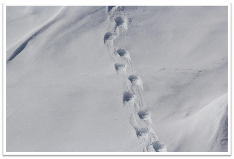 Am nächsten Tag sucht sich die „Ortelius“ langsam ihren Weg durchs Packeis, ich höre es am Rumpf entlang kratzen und schaben. Durchaus unheimlich. Weiterhin herrliches Wetter. Im Schnee sind die ersten Eisbärenspuren zu sehen.